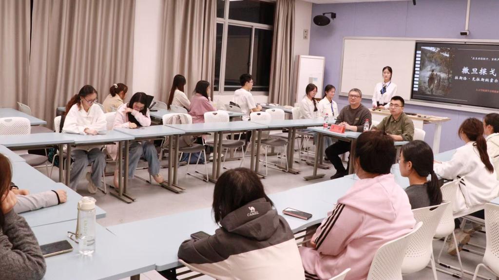 活动伊始,主持人以《撒旦探戈》为核心,介绍了该作品的创作背景与主要内容,为后续讨论奠定基础。随后,同学们在引导下逐步深入,从文本细读延伸至跨媒介对比,再结合现实议题,层层推进对作品内核的探讨。