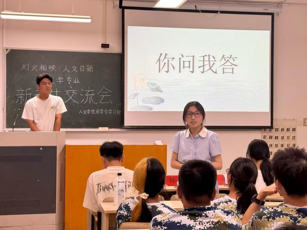 在随后的“你问我答”环节中,新生们围绕专业书籍、时间管理等问题积极提问。三位学长学姐结合自身经历耐心解答,现场互动氛围热烈。