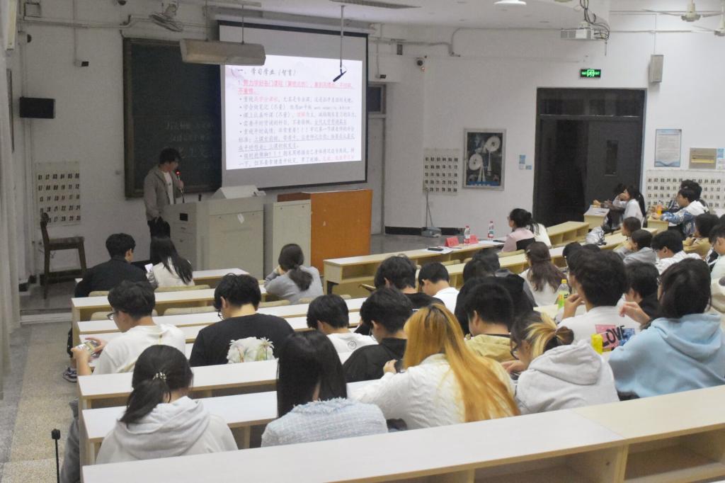 在经验分享环节中,两位学长学姐结合自身学习与实践经历,从多个角度为新生提供了实用建议。金泓民以“从迷茫走向坚定”为题,指出大学生应具备自律与独立的态度,并特别强调了学业的重要性。他就竞赛参与、日常考核与未来就业等方面提出具体建议,鼓励新生尽早规划大学生活,重视英语学习与体能测试,并提醒有意向考编或考研的同学结合个人目标善用网络资源,提前做好信息搜集。陈苏敏则以“探索与起航”到“平衡与深耕”为主线,分享了她通过参赛不断成长的经历。她鼓励新生勇于尝试,避免自我设限,并强调参与竞赛应注重质量而非数量,建议大家在感兴趣且具发展潜力的领域中深入探索。在谈及人际交往时,她指出“向上社交”的本质在于自我提升——只有成为更好的自己,才能吸引优秀的同行者。此外,她也鼓励同学们广泛阅读、多元体验,以此丰富内心世界。