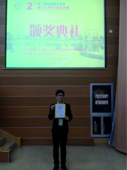 12月13日,我院11级中教专业学生魏炜峰在第二届全国师范生教学技能竞赛中获一等奖。而此前,魏炜峰和俞佳娣两位同学已在今年11月底举行的浙江省第八届师范生教学技能竞赛中分别获得了二等奖和三等奖。这一成绩在我校...